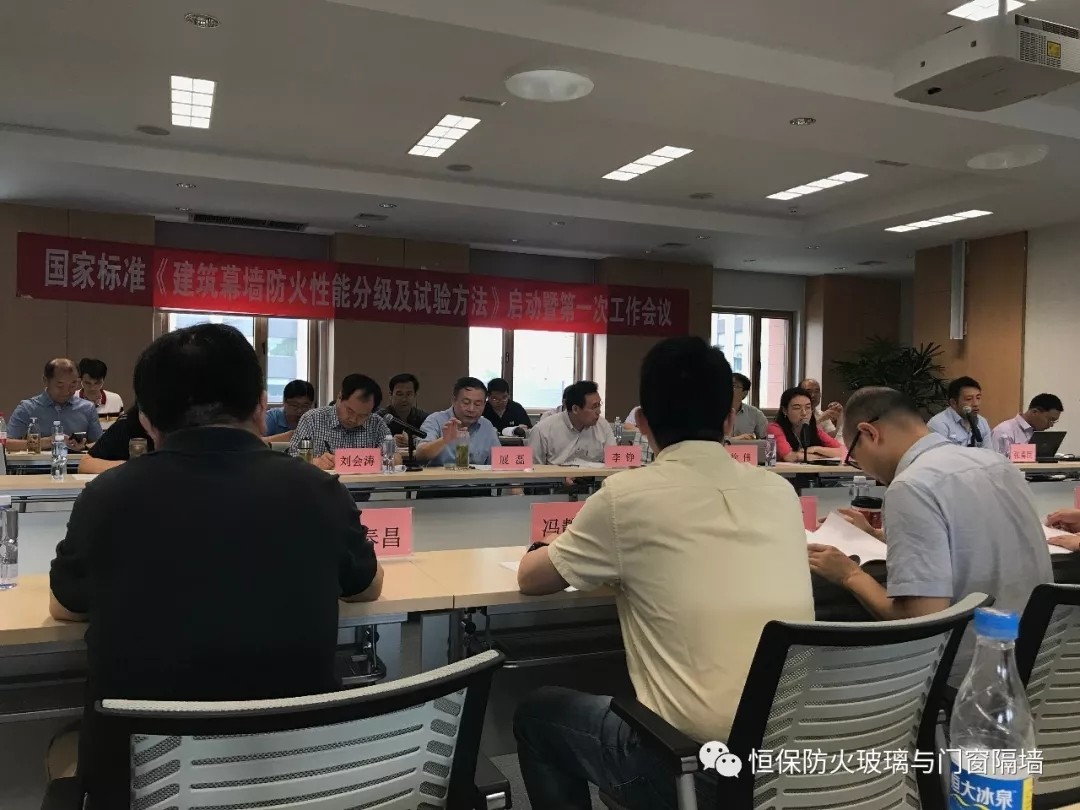 2018年6月8日,由中國建筑科學研究院有限公司主編的國家標準《建筑幕墻防火性能分級及試驗方法》編制啟動暨第一次工作會議在北京召開。住房和城鄉建設部標準定額研究所李錚副所長、展磊處長,歸口單位全國建筑幕墻門窗標準化技術委員會王洪濤秘書長,主編單位中國建筑科學研究院有限公司標準處張淼工程師、建筑環境與節能研究院徐偉院長等領導與會。會議由全國建筑幕墻門窗標準化技術委員會秘書處劉會濤高級工程師主持,主參編單位共計55人參加了會議。