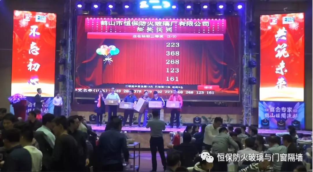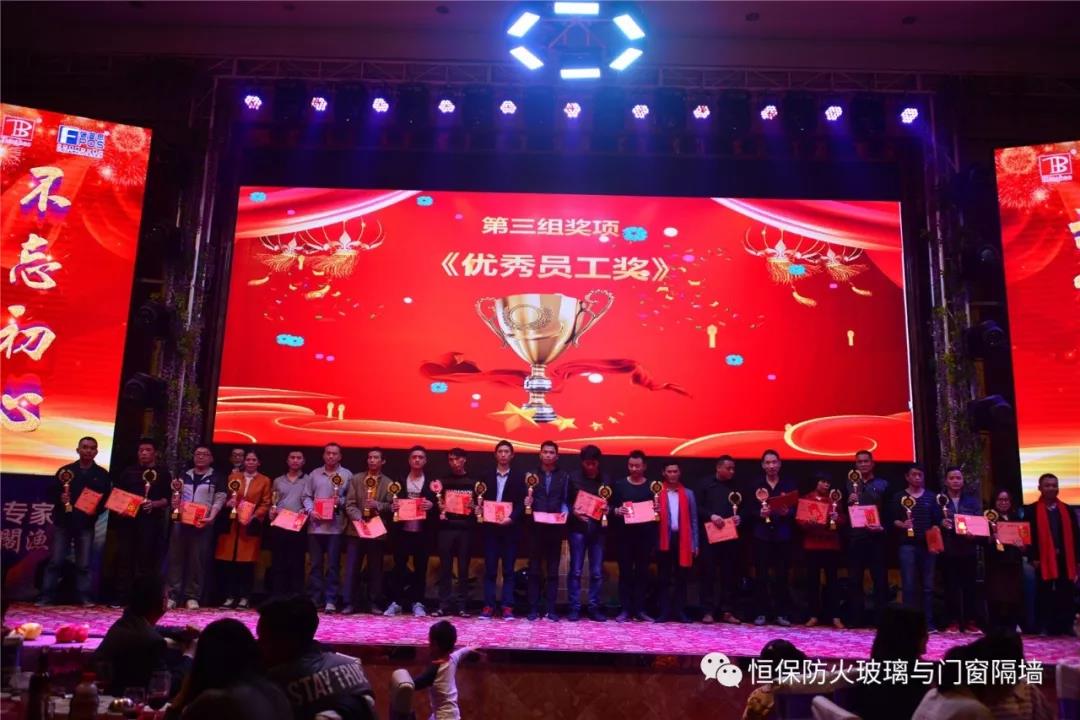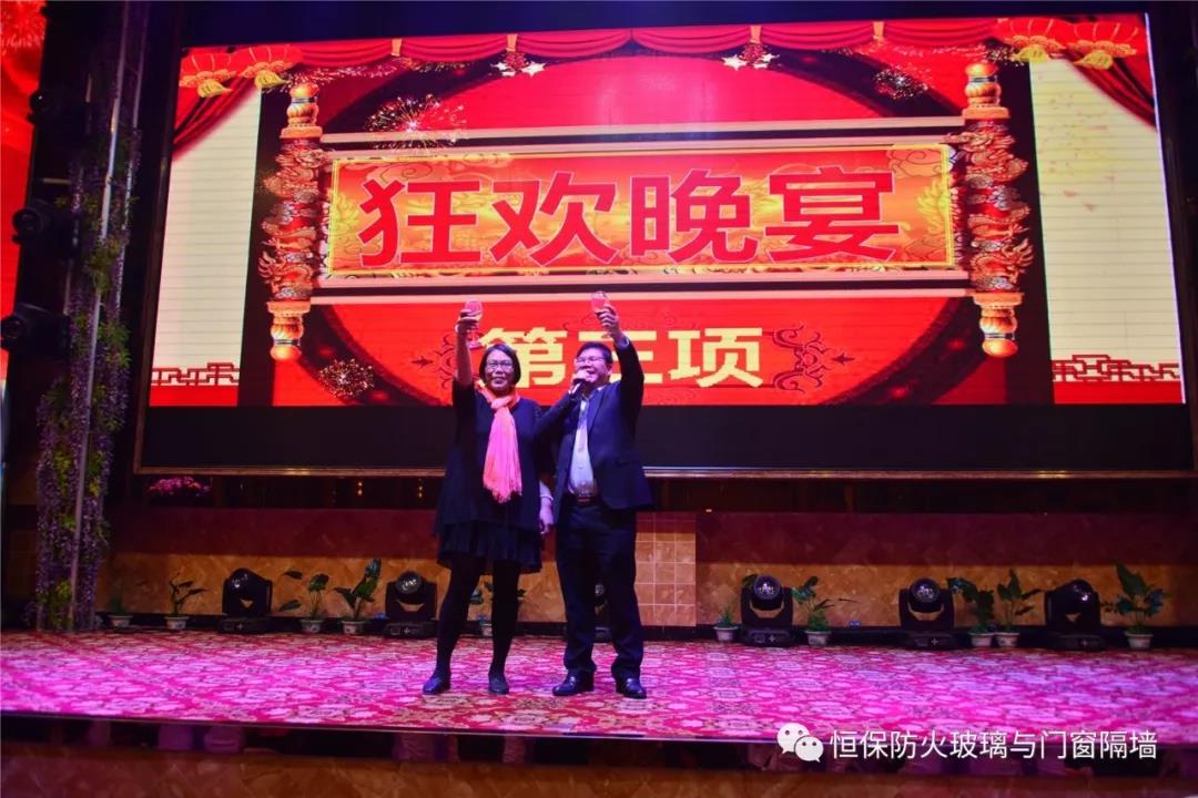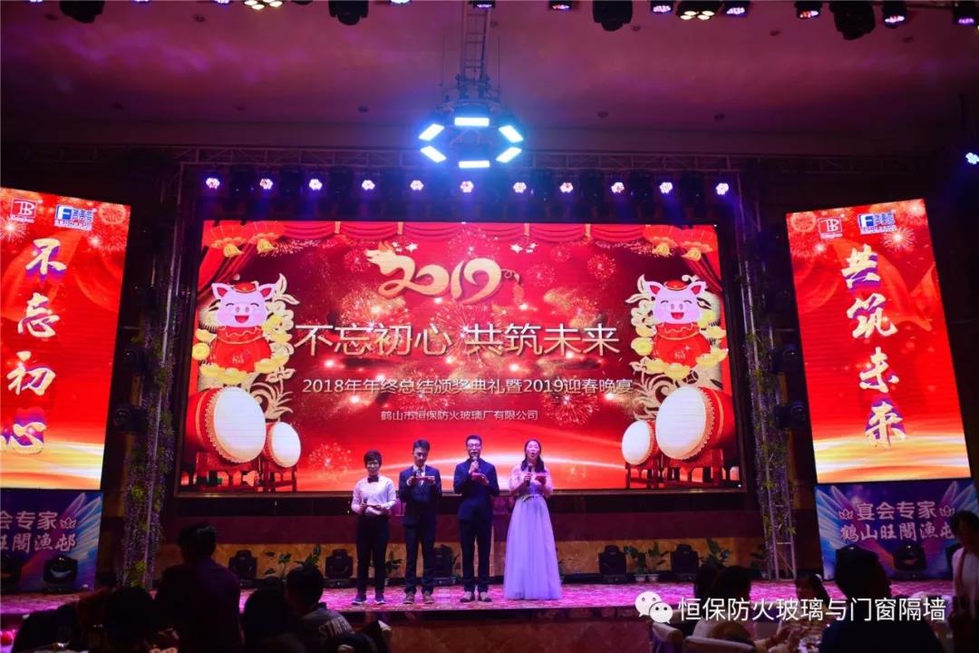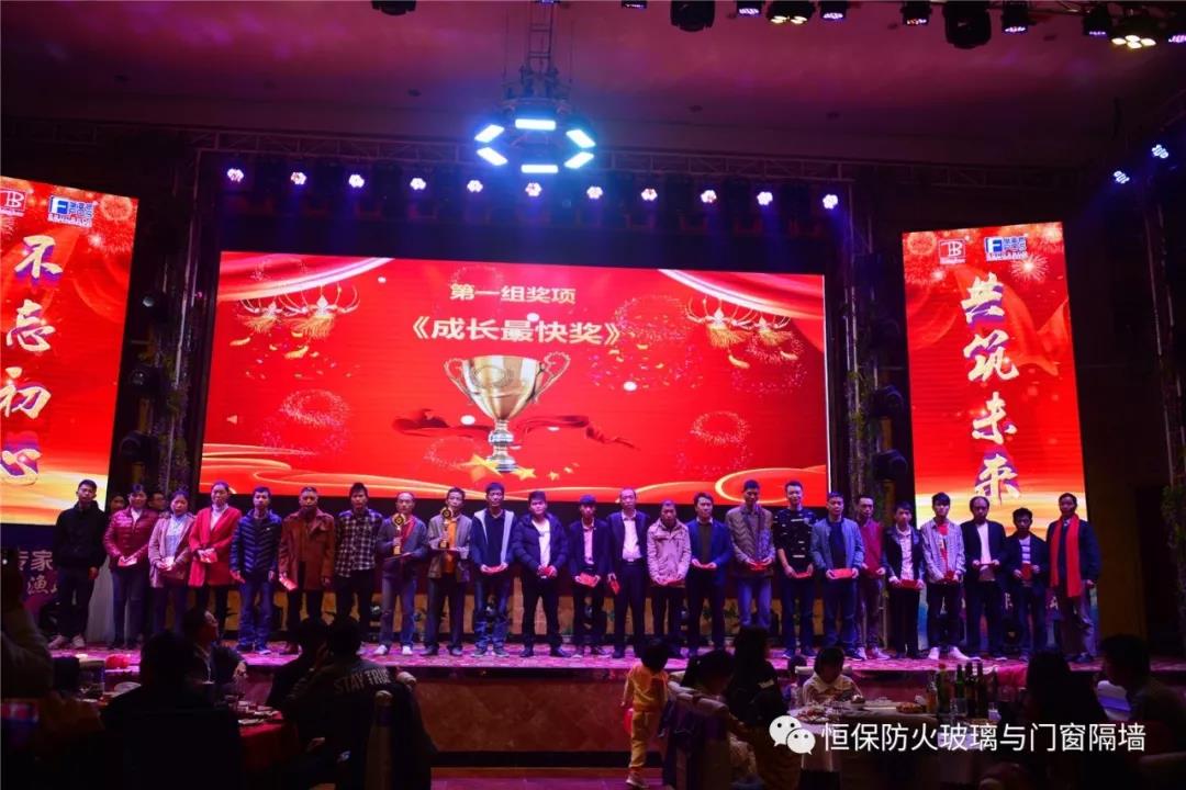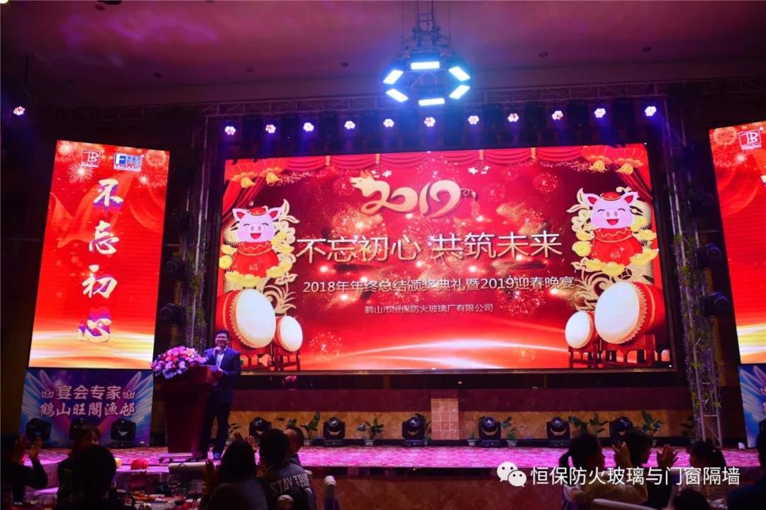 19:30分,恒保年會在鼓舞飛揚中拉開了帷幕,首先是恒保總經(jīng)理陳沃林先生做年終致辭,陳總回顧了2018年所取得的成績與不足,并提出了2019年恒保要全力以赴,不忘初心,繼續(xù)奮斗,再創(chuàng)佳績的戰(zhàn)略方針。2018年是恒保跨越發(fā)展的一年。全體恒保家人,團結(jié)一心,艱苦奮斗,全力實現(xiàn)了公司既定的年度目標(biāo),同比各項重要指標(biāo)增長逾80%。2018年我們大力引進(jìn)新設(shè)備,開發(fā)新產(chǎn)品10多項,產(chǎn)品通過國家檢測20多項 ,至此,恒保出品已擁有37個3C認(rèn)證,158份檢驗報告,成為行業(yè)內(nèi)公認(rèn)通過國家檢驗、認(rèn)證最多的防火玻璃門窗企業(yè);2018年在行業(yè)各類權(quán)威獎項評比中,榮獲“全國鋁門窗幕墻展 年度星品獎”、榮獲“新玻網(wǎng) 門窗玻璃十強企業(yè)”、陳沃林總經(jīng)理榮獲鶴山市工商聯(lián)系統(tǒng)“工匠之星”稱號、陳沃林總經(jīng)理榮獲第五屆中國玻璃行業(yè)“玻璃工匠”稱號、榮獲第三屆建筑門窗金軒獎“最具創(chuàng)新力配套產(chǎn)品”、榮獲第三屆建筑門窗金軒獎“最具發(fā)展?jié)摿ζ髽I(yè)”、榮獲中國門窗幕墻行業(yè)“科技進(jìn)步推動獎”等十多項獎項。2019年我們將持續(xù)優(yōu)化各部門管理,提高員工工作技能、提高生產(chǎn)管理水平、提高生產(chǎn)效率、提高綜合管理能力,減少物料損耗,減少出錯率。加強精密型材、新型防火門窗的開發(fā),滿足不同客戶的需求。2019年恒保上下一心、同心協(xié)力、不忘初心,共筑未來,為實現(xiàn)中國平安夢、世界平安夢繼續(xù)奮斗!