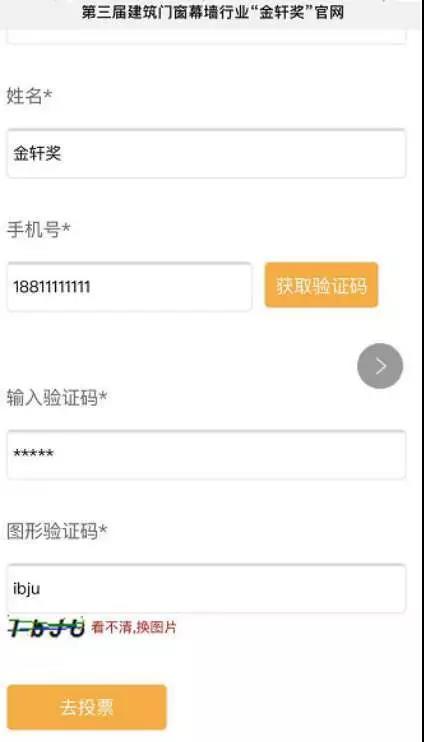 進(jìn)入投票頁面,彈出實(shí)名制個人信息填寫表格——請?zhí)顚懲暾麄€人信息,點(diǎn)擊獲取驗(yàn)證碼并輸入后提交。