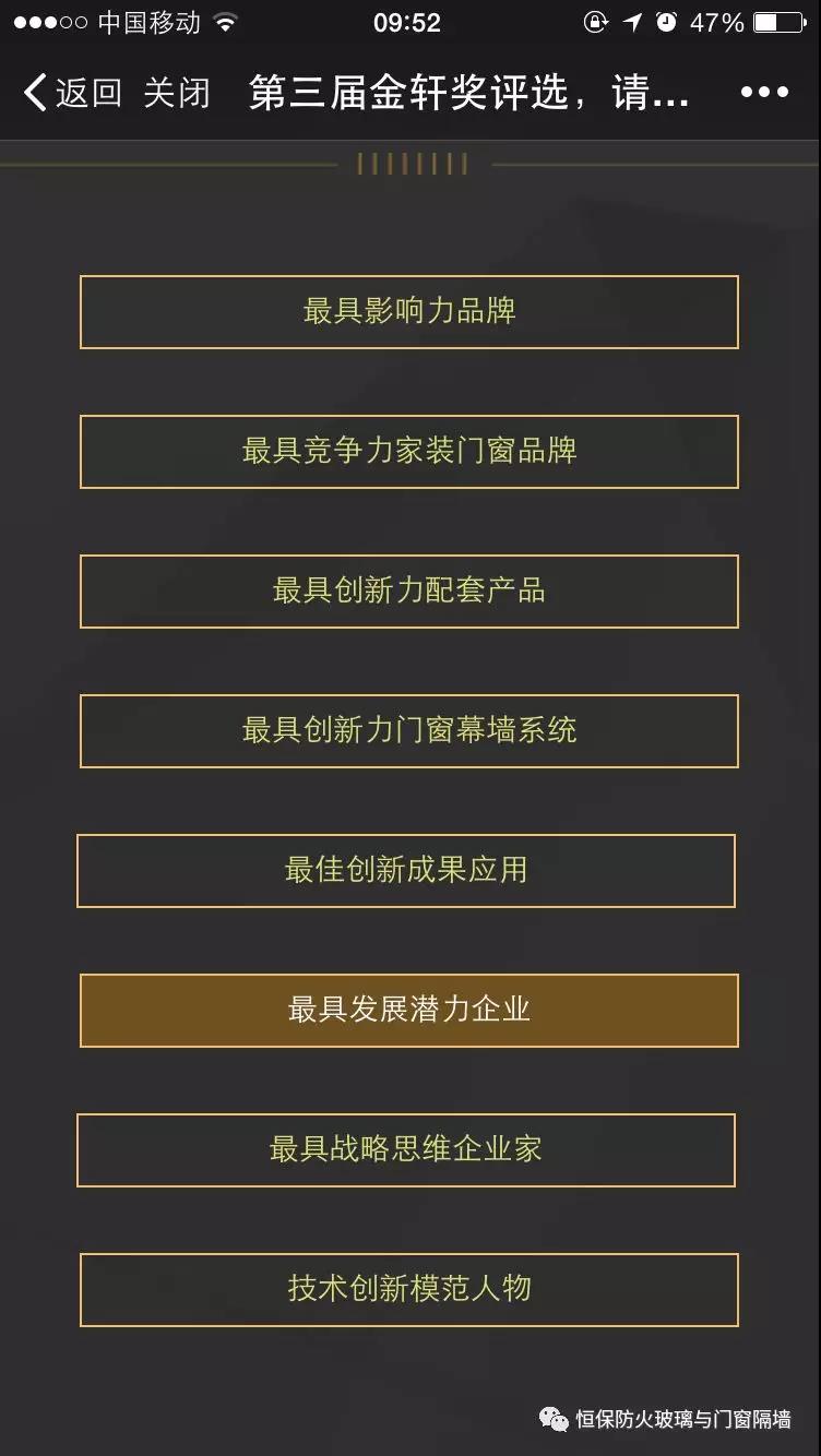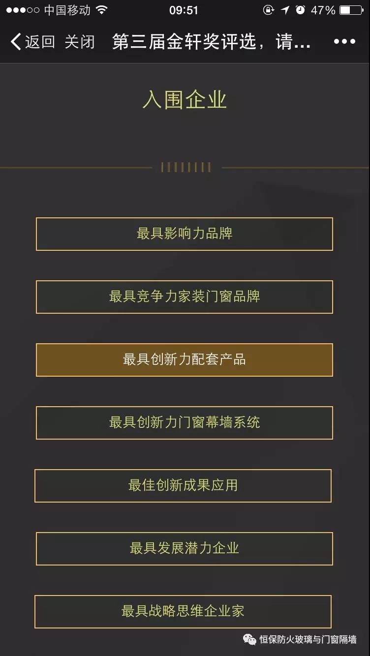 投票僅限門窗幕墻及相關(guān)行業(yè)(建筑師、地產(chǎn)商、工程單位)人士,非行業(yè)人士投票將被視作無效票;