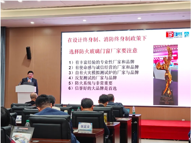 恒保董事長陳沃林先生在論壇上分享報告《高品質防火玻璃及其在超高層建筑核心筒中的應用》,從正確認識防火玻璃、什么是高品質防火玻璃、高層建筑消防當前趨勢以及高品質防火玻璃系統在高層建筑中的應用四個方面介紹防火玻璃系統產品在高層建筑消防的作用,并分享如何正確選擇防火玻璃系統產品的經驗,讓高層建筑更加美觀實用的同時,避免出現火災時“防火玻璃”不防火的現象。陳沃林先生呼吁大家共同抵制假冒偽劣防火玻璃產品,對建筑消防安全負責、對生命安全負責。